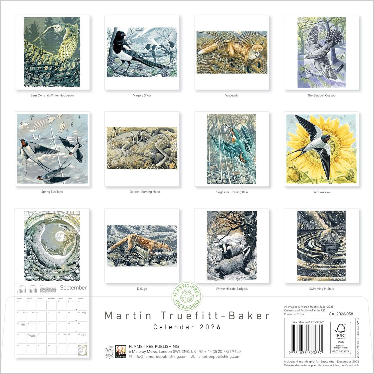 Celebrate the wildlife of the Brecon Beacons with this stunning wall calendar from fine art printmaker Martin Truefitt-Baker. Living in South Wales, Martin draws inspiration from the animals he encounters on his walks near his home, capturing both their beauty and the landscapes they inhabit.