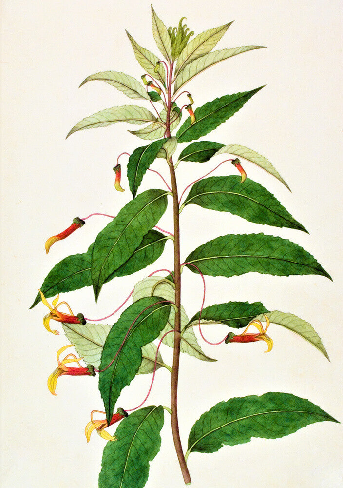 Watercolour heightened with gum arabic over traces of pencil, overdrawn with ink. Original artwork 24.5 x 35.8 cm. Annotated: Siphocampylus (pencil).