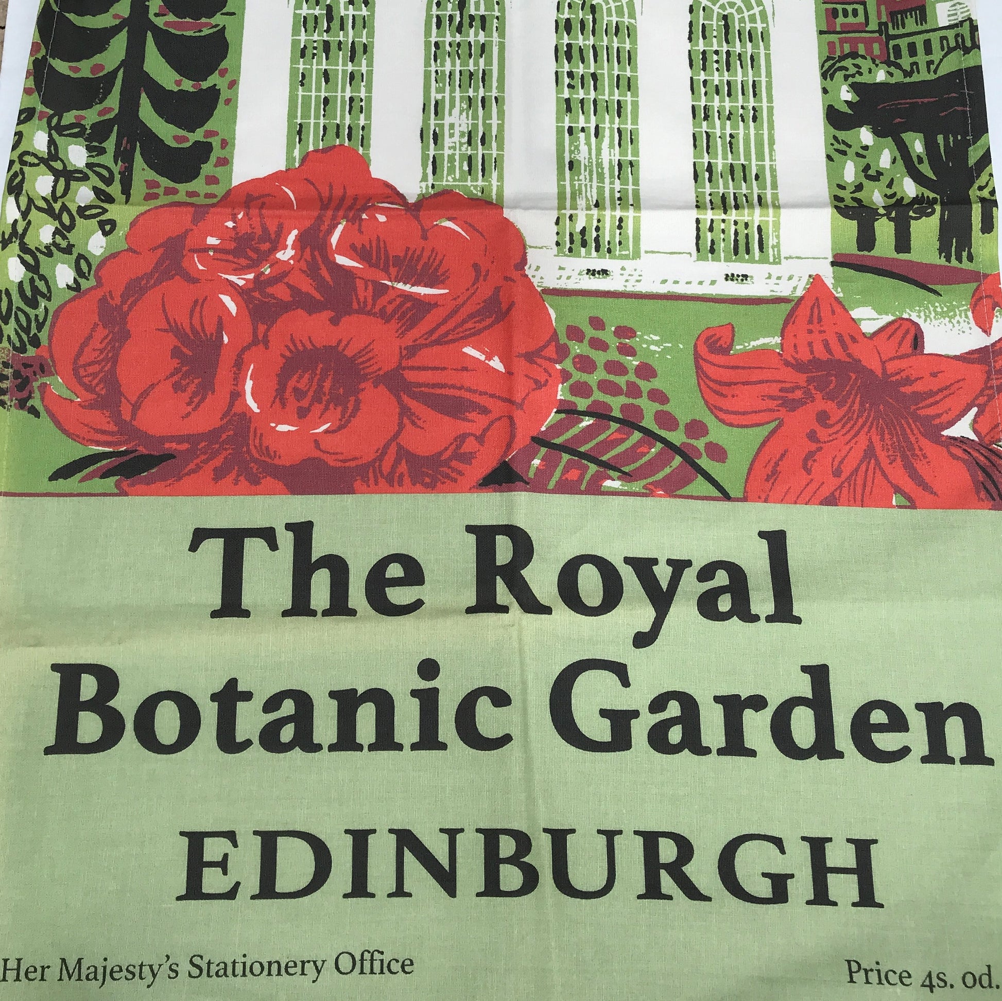 This distinctive tea towel design is from the Royal Botanic garden Edinburgh's archive and is based on an illustration used for a garden guide in the 1960s. The tea towel is made from 100% cotton and is made in the UK exclusively for RBGE.