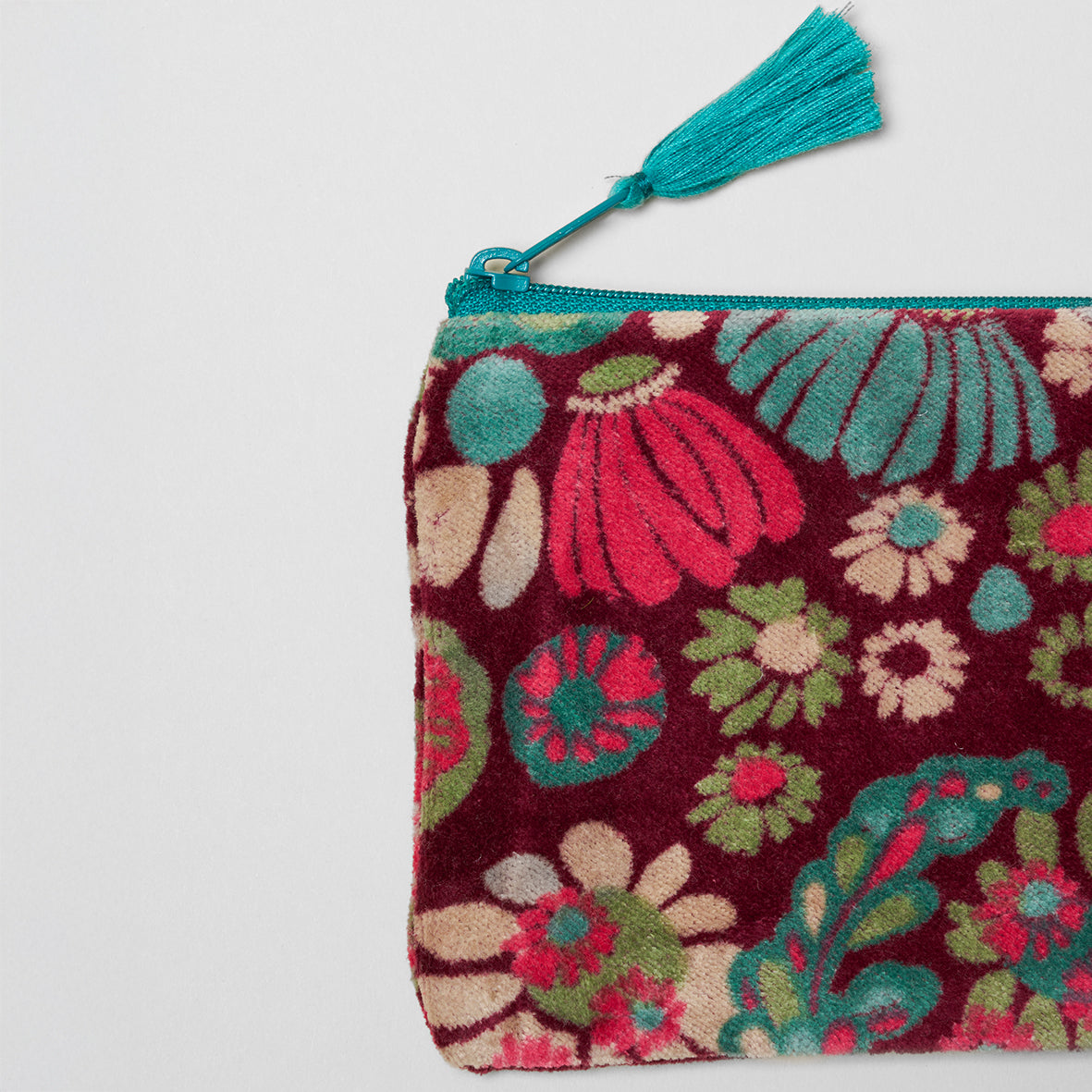 This luxurious velvet pouch displays the Molly Burgundy design, which features a burgundy background with bright floral detailing. Soft to the touch and easy to carry, it’s perfect for keeping life’s small items beautifully organised.